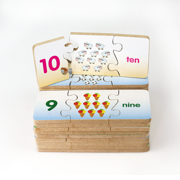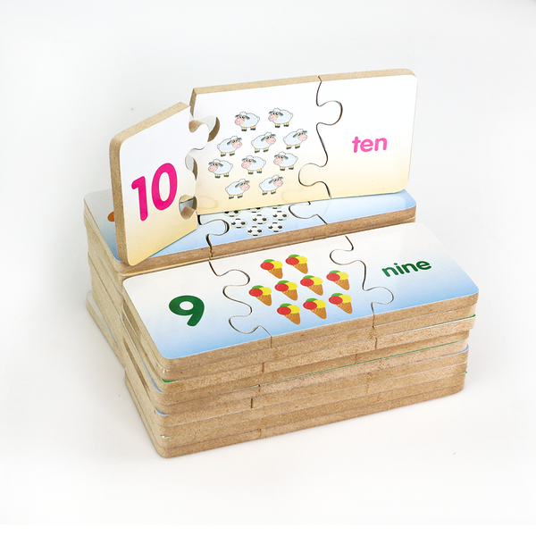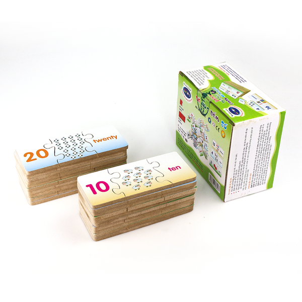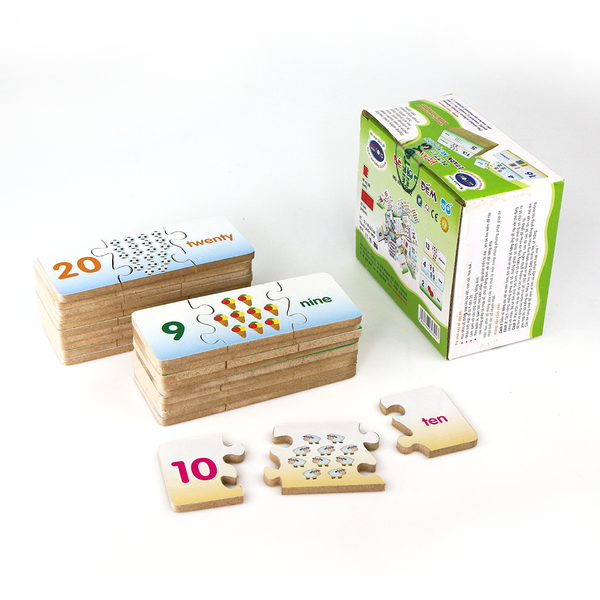 - Rèn luyện óc quan sát, tính kiên nhẫn, giúp phát triển tư duy… khi bé tìm kiếm để ráp các miếng ghép có chứa số, chữ số tiếng Anh với số vật tương ứng.