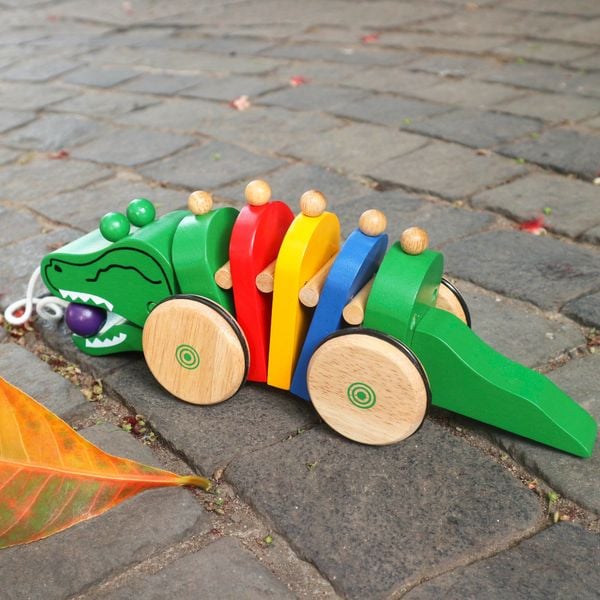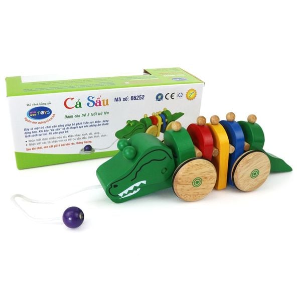 Đồ chơi Cá sấu nằm trong bộ sưu tập trò chơi vận động của Winwintoys. Sản phẩm được mô phỏng như hình một chú cá sấu thật trong đời sống. Cá sấu được thiết kế có thể di chuyển được bằng 4 bánh xe. Khi kéo cá sấu đi, các gai và thân cá sấu sẽ chuyển động theo tạo sự uốn lượn uyển chuyển va vào nhau phát ra âm thanh lách cách rất vui tai. Từ đó kích thích trẻ vận động giúp cơ xương của trẻ phát triển vững chắc, giảm nguy cơ mắc bệnh béo phì, tạo thói quen vận động cho trẻ.