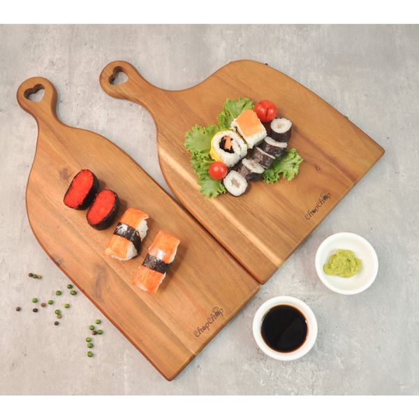 Thớt dài phù hợp để làm khay bánh mì, đựng trái cây… thớt còn lại với phần thân được thiết kế to bản có thể dùng để thay thế các loại dĩa truyền thống trong việc trang trí các món ăn như beefsteak, xúc xích, sườn nướng tảng…