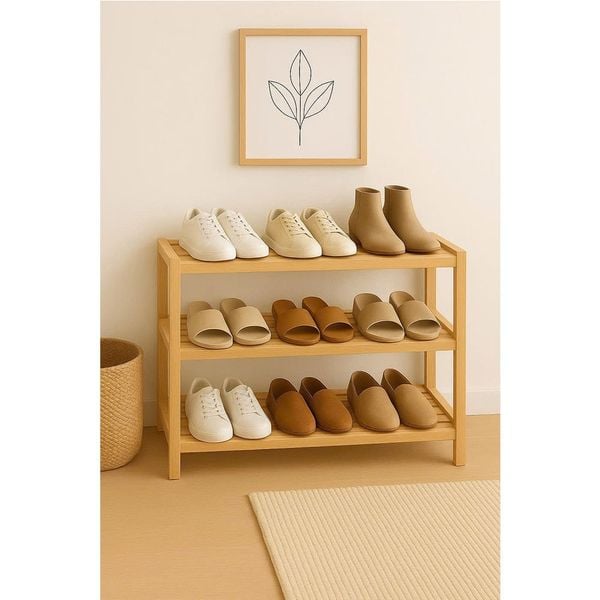 Kệ giày 3 tầng, tháo rời, TN Gỗ Đức Thành 47371K được làm từ gỗ cao su, sản xuất theo quy trình công nghệ sản xuất hiện đại đạt tiêu chuẩn xuất khẩu. Sản phẩm có kết cấu chắc chắn, màu sắc tươi sáng, mặt gỗ láng mịn với nhiều thanh gỗ song song tạo độ thông thoáng. Sử dụng kệ giày giúp cho giày dép để đúng nơi, đúng chỗ, ngăn nắp, gọn gàng hơn.