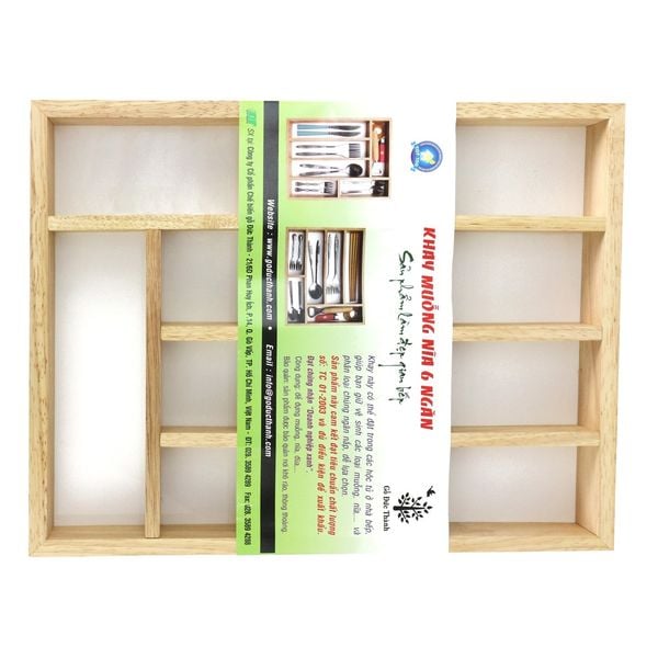 Khay muỗng nĩa 6 ngăn Gỗ Đức Thành 23031 được thiết kế với nhiều ngăn lớn nhỏ dùng để các loại muỗng, nĩa, đũa… gọn gàng. Sử dụng sản phẩm sẽ giúp gian bếp nhà bạn trở nên ngăn nắp, tinh tươm hơn. Khay muỗng nĩa 6 ngăn được chế biến từ nguyên liệu gỗ cao su tự nhiên, đáy lót MDF màu trắng sáng đẹp, dễ dàng nhìn thấy các vết bẩn khi vệ sinh. Sản phẩm có khả năng chống mối mọt tốt và an toàn với sức khỏe của người tiêu dùng.