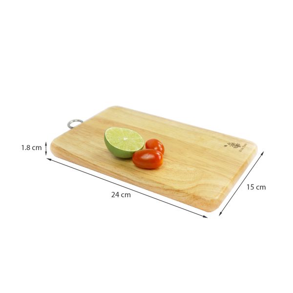 Thớt chữ nhật khoen 250 được làm từ gỗ cao su đã qua xử lý chống mối, mọt, loại bỏ các tạp chất có trong gỗ, an toàn cho sức khỏe. Sản phẩm có màu sáng, bề mặt láng mịn, phù hợp sử dụng cắt, thái thực phẩm và giúp dễ dàng vệ sinh sản phẩm sau khi dùng.