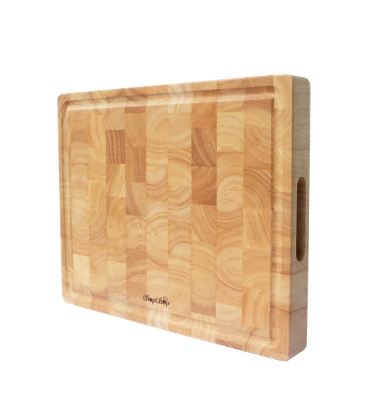 Thớt sớ lật Chopchop được làm từ gỗ cao su tự nhiên, hoa văn độc đáo, kích thước lớn phù hợp để băm, chặt thức ăn.